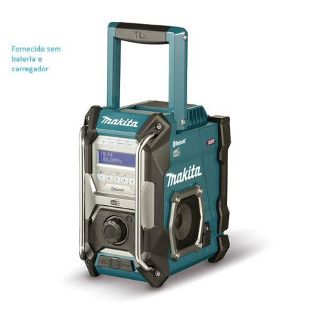 Equipado com Bluetooth para se ligar sem fios ao seu dispositivo móvel e reproduzir música. 2 colunas de som potentes de 89mm de diâmetro. Rádio de trabalho Bluetooth DAB / DAB+ 12Vmax-40Vmax CXT LXT XGT. Visor LCD retroiluminado para mostrar informação de texto. Funciona até 30h com uma bateria de 40Vmax XGT Li-ion 4.0 Ah. IP65 tecnologia à prova de pó e água: Para utilização em trabalhos ao ar livre e condições atmosféricas adversas. Pega de transporte, proporcionando uma aderência suave. Possui ainda um transformador para utilização constante ligado à eletricidade.